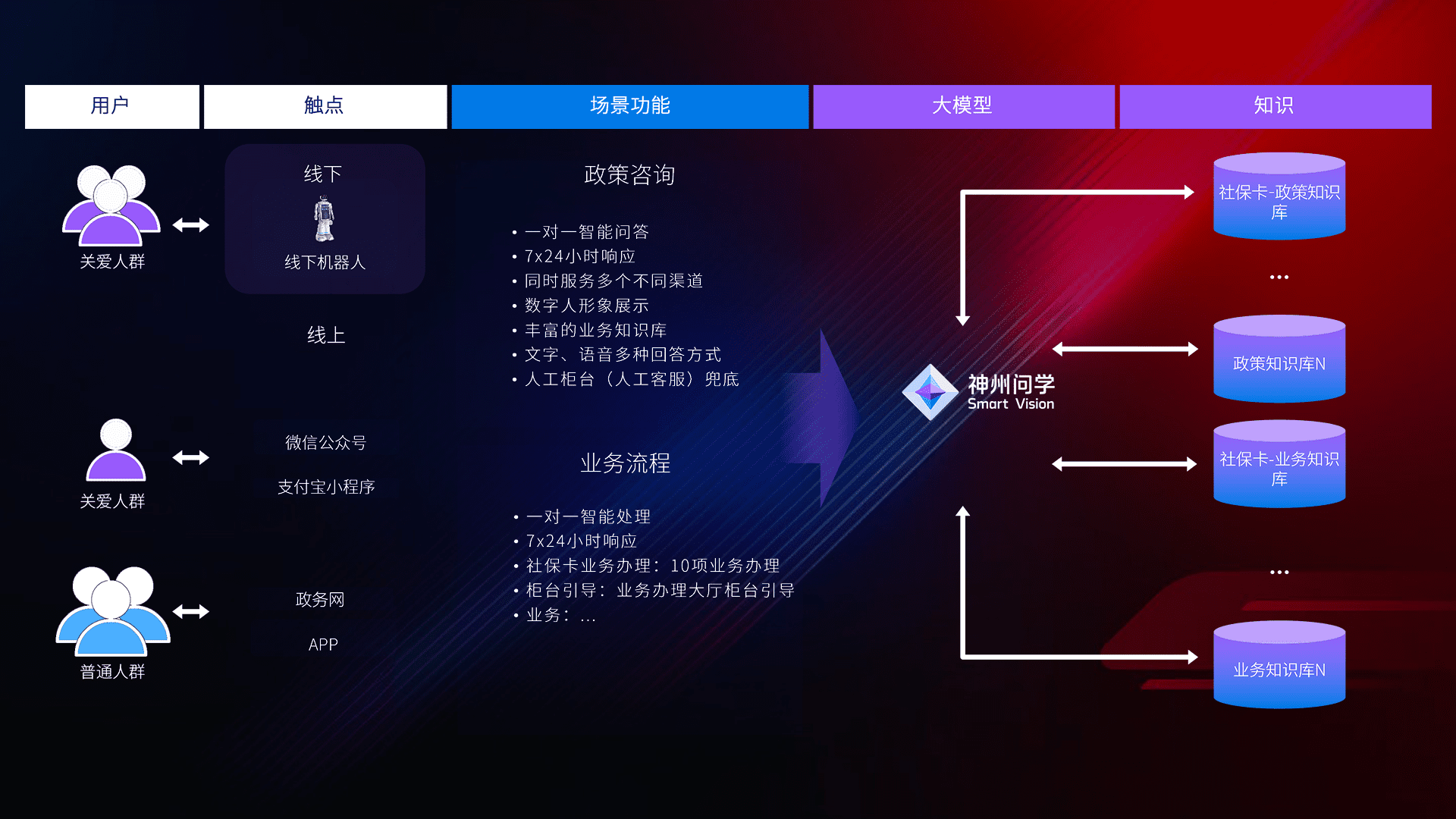 在服务大厅部署客服机器人,,,,在线上应用和小程序配置客服数字人,,,724小时为群众解答常规问题,,,客服机器人无法处理的,,,,转现场人工处理。。