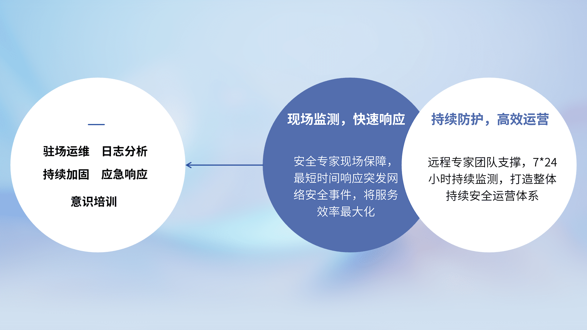 7X24小时持续监测安全事件,保持安全策略有效性,降低资产脆弱性风险,,,精准拦截黑客攻击,,,减少被黑客利用的机会,,第一时间遏制,,降低损失。。。